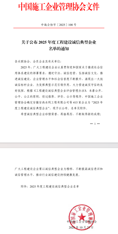 工程局公司榮獲2025年度工程建設(shè)誠信典型企業(yè)